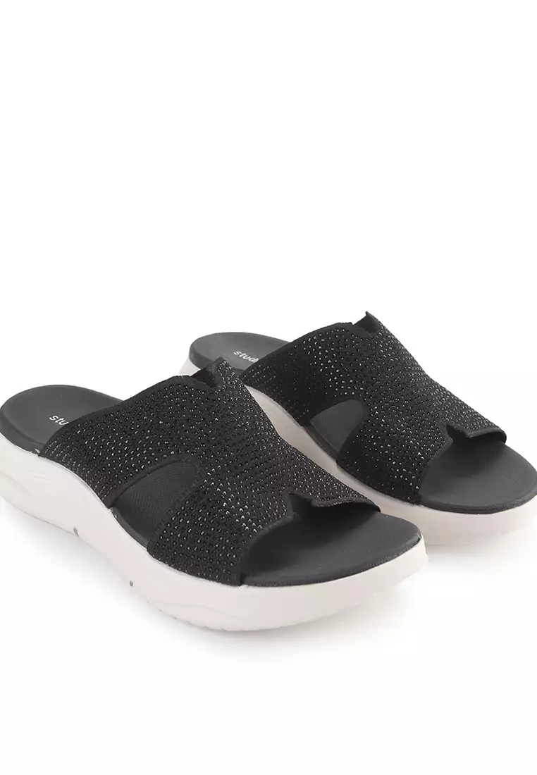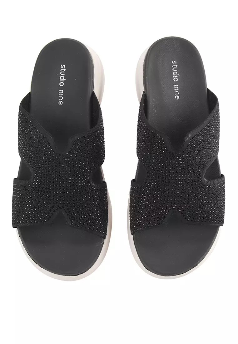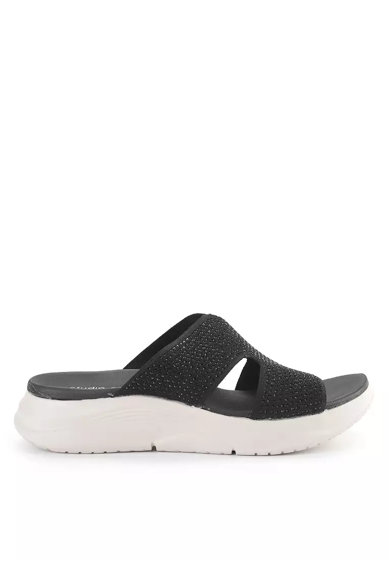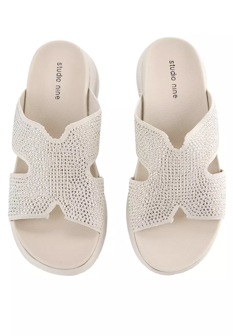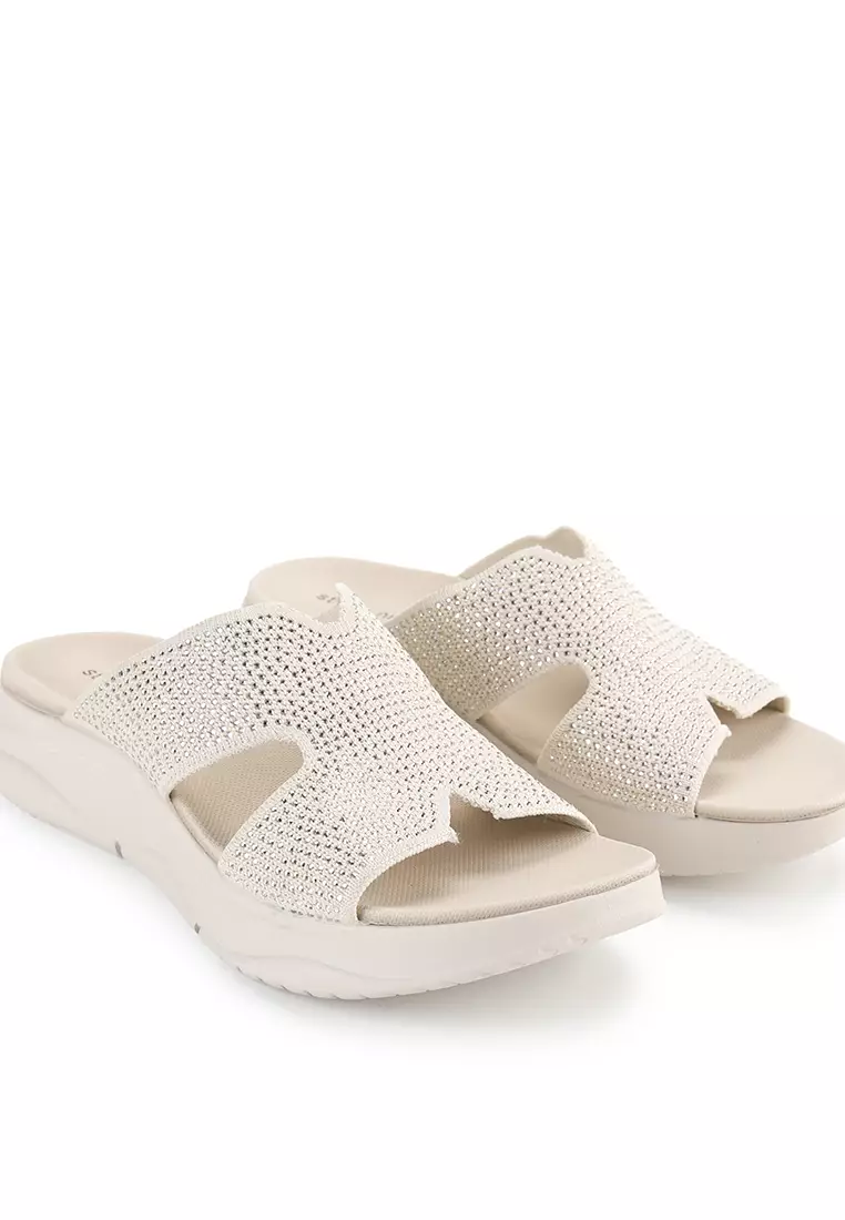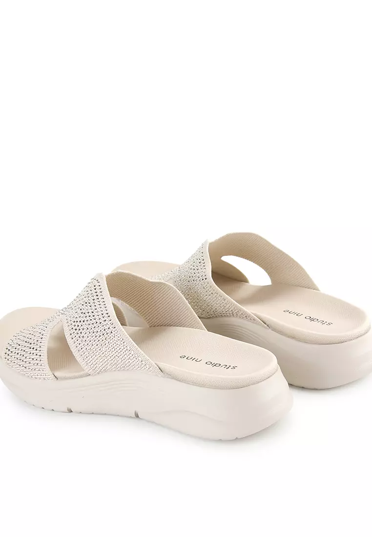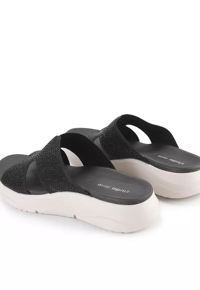 - Sandal wedges bernuansa dual tone dengan detail glitter upper