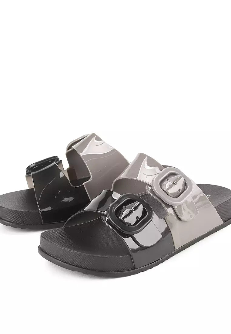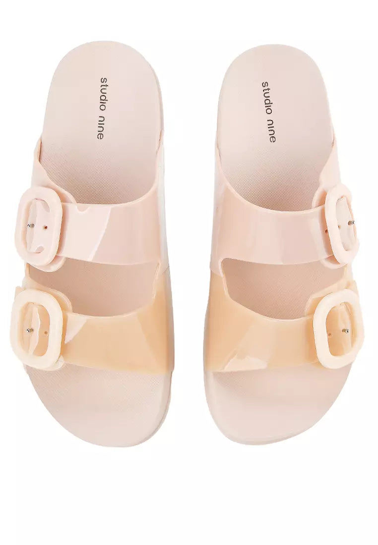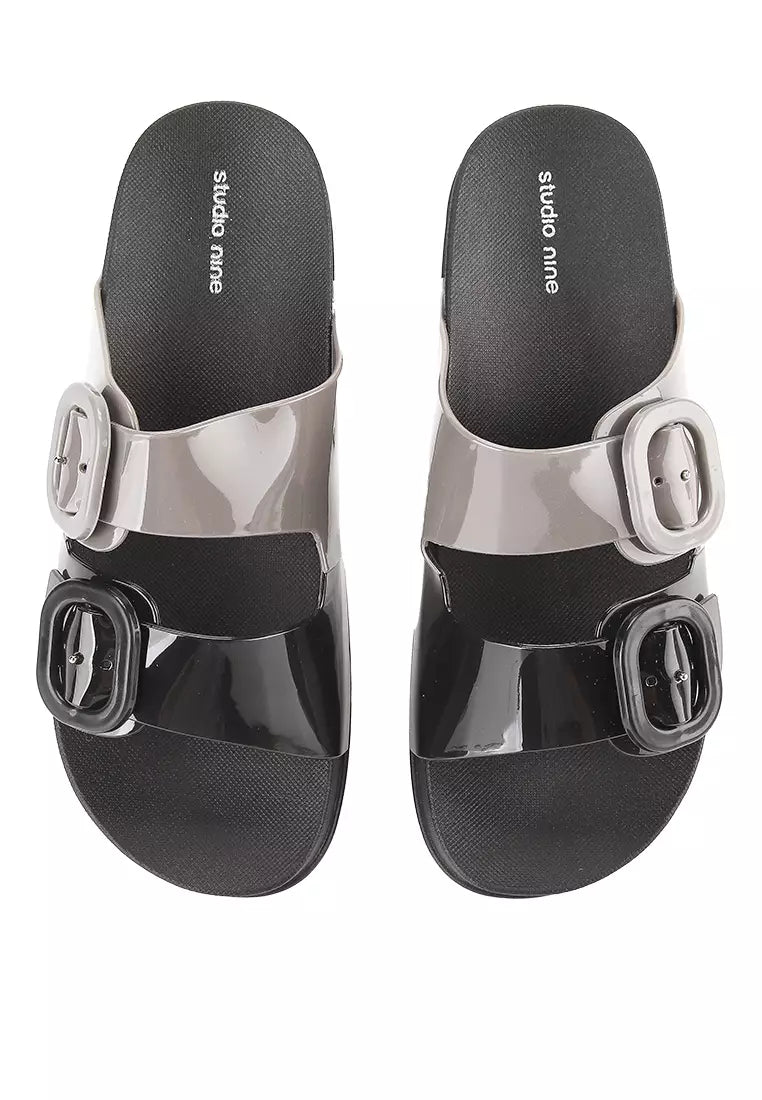 - Slide sandal dengan detail double buckle untuk casual chic style