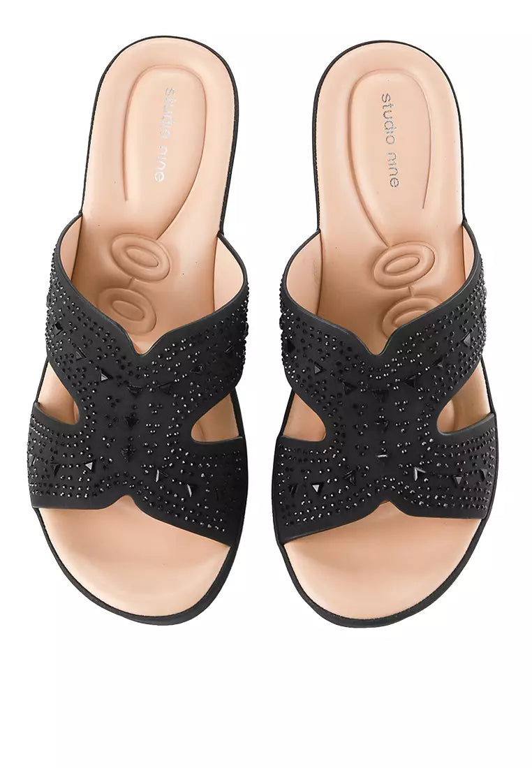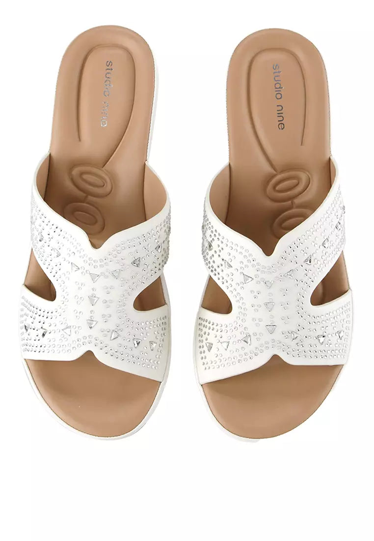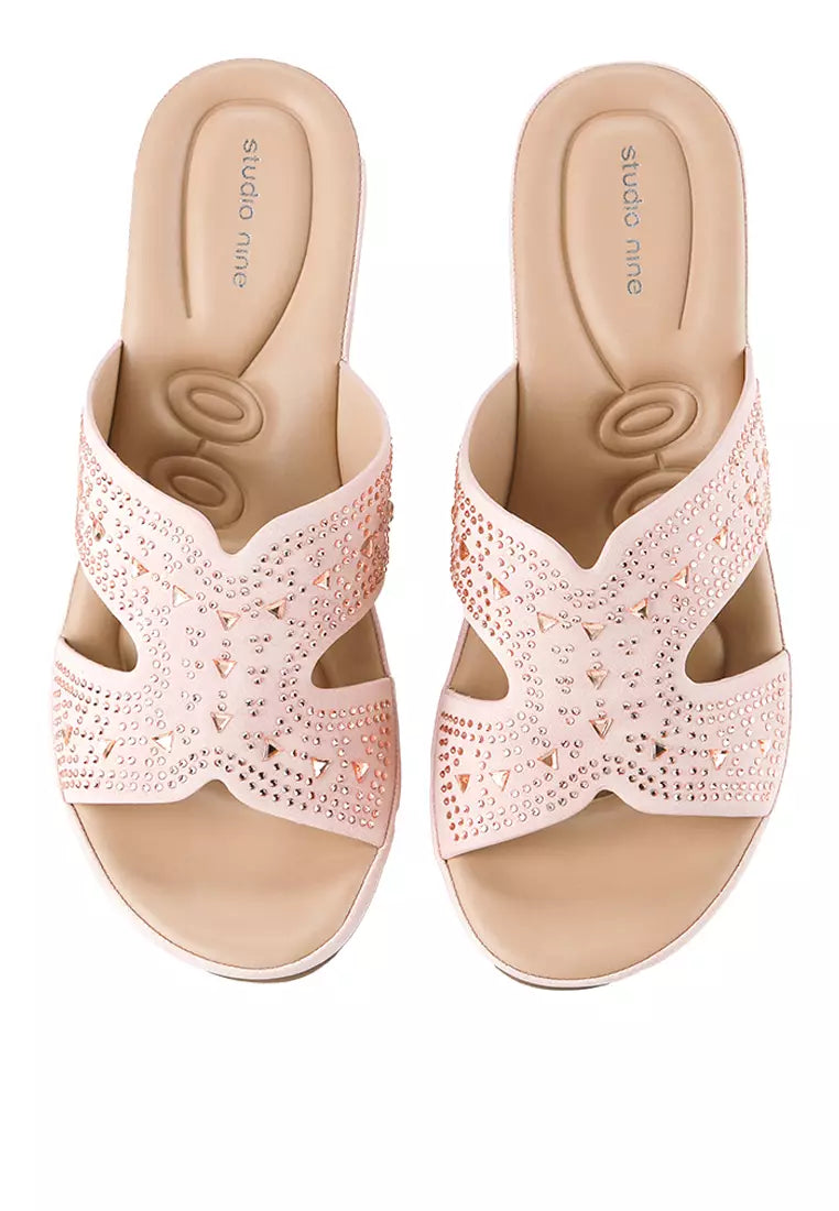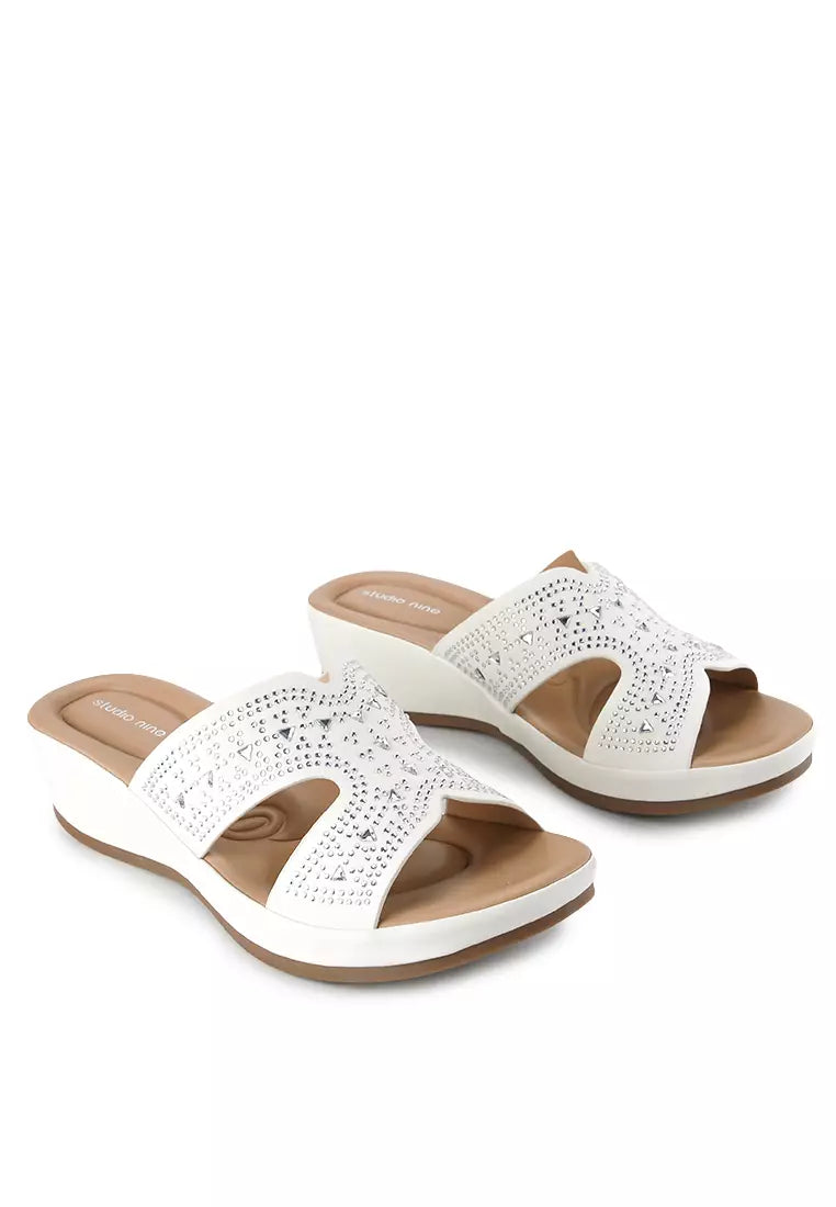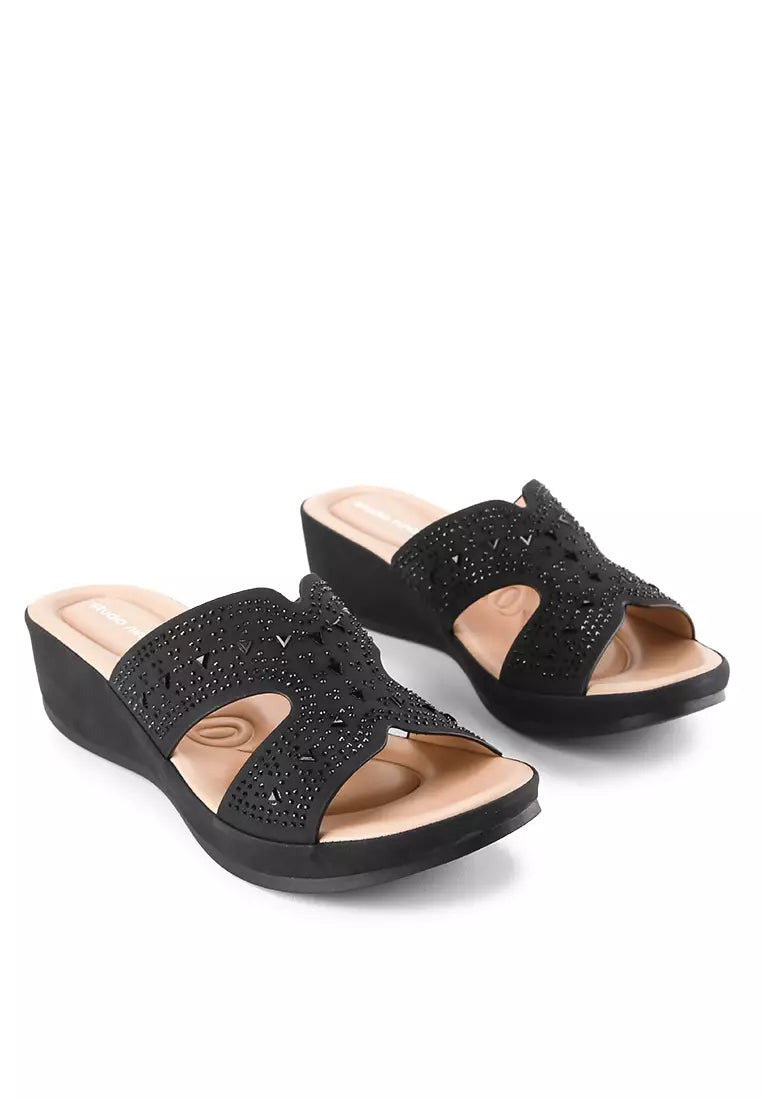 - Sandal wedges warna solid dengan detail embellishment berkesan klasik